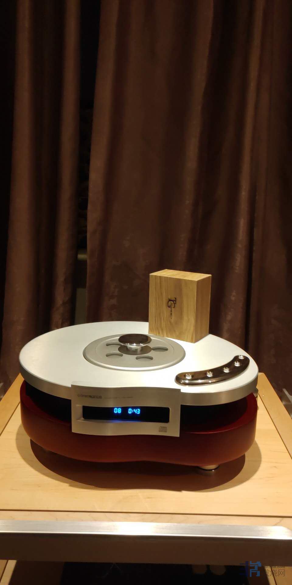 听说最近老师又弄了样发烧玩具,看玩过的烧友反映越靠近电源越有效,遂心动也想买个放在隔离牛上试试。几天后收到,如愿放置隔离牛上面,声音变得更凝聚,水润鲜明。但听罢二曲觉有些紧,不耐听。就将魔砖取下,放置不同位置:解码、胆前级、后级(转盘是翻盖型放置不便)上逐一试听。最后发现在后级上最好,声音不但水润鲜明,形体适中、感情起伏更好,重要的是宽松耐听。