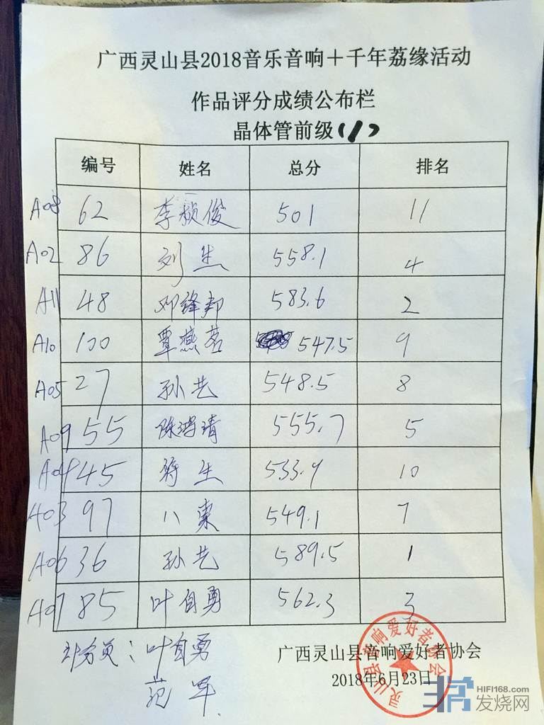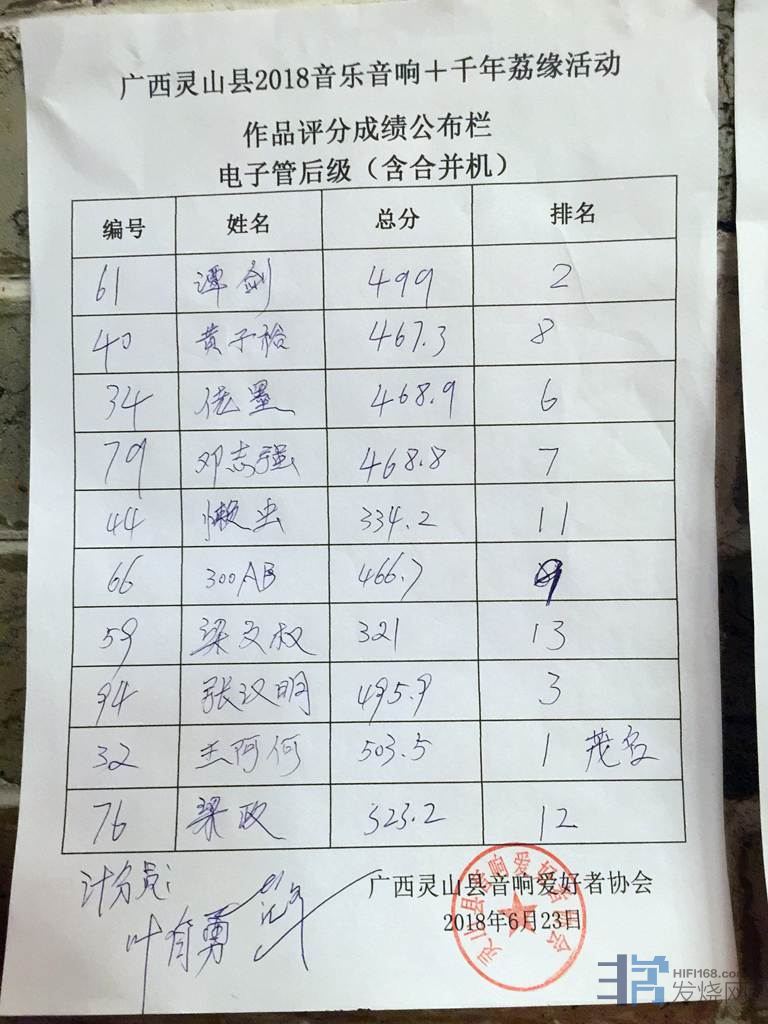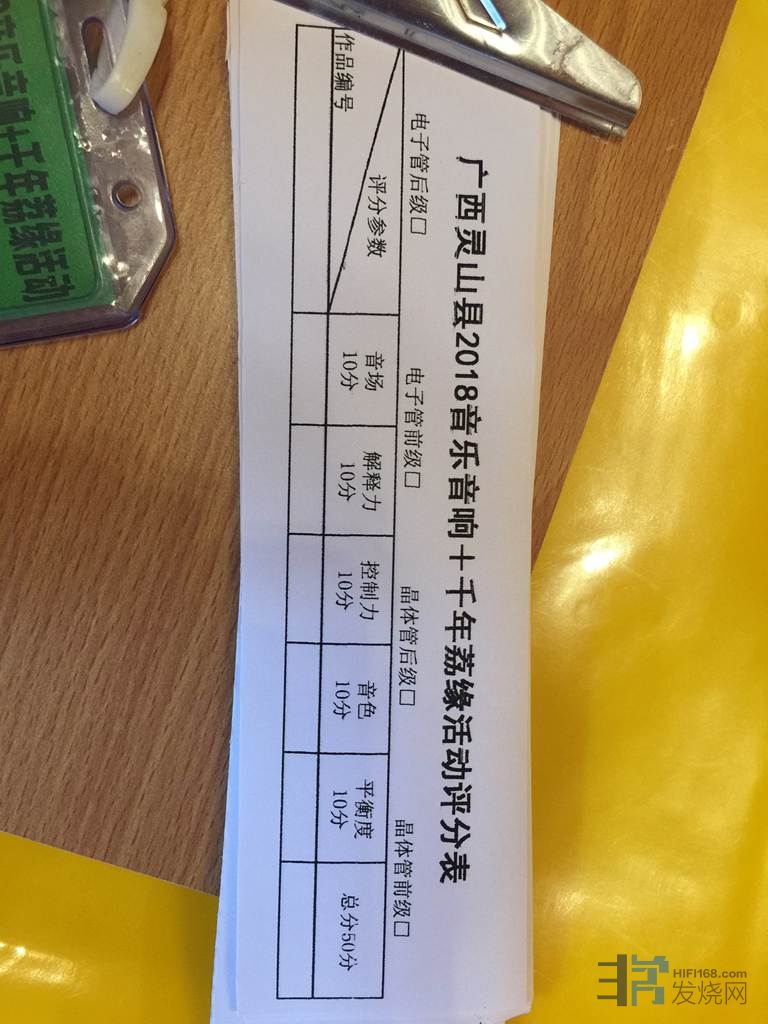 40台机器包括胆前级,胆后级,晶体管前级,晶体管后级,合并机。都要先捡测正常才能参加比较。播放四首曲目,十二大评委评分。整整从早上9.30分比到下午6.30分才正式完成,我有幸参加了,发现评委他们辛苦坚持了一天,不得不佩服烧友的心态。