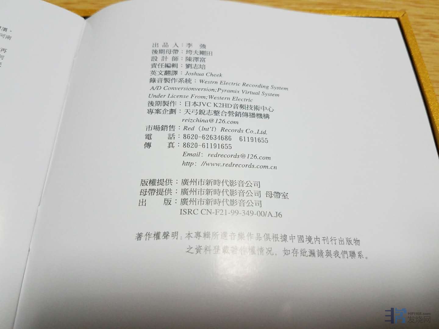 2)我购买了十多张1:1,其中三款出现几处明显断顿的瑕疵。就是那种‘啪’或‘破’的声音。抓轨后用Audacity分析音频,在频谱上可以看到音频线断了一下。这些曲目以前都发行过CD,对比之下,只能说是他们1:1转制的某个环节除了纰漏,或者只是某台机器出了问题。当然他们客服是不相信我的说法,把音频的频谱图给他们,也说不可能,并说退换结果还会一样,因为这是1:1转录。当然,我搞音频声学的,并不买账。换货后,三张换回来的CD,其中两张这个瑕疵完全消失。但是有一张,问题依然存在,等会我再专门讲我听到看到了什么。我在国外短期回国,只能算了。