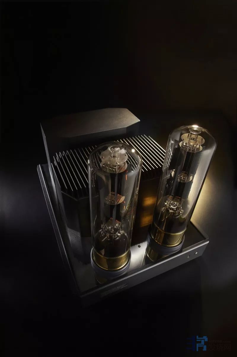 KR Audio起源于捷克布拉格一家专门生产真空管的工厂(1928年建厂),过去这家工厂曾经长期为Philips 代工生产真空管,近年则由Riccardo Kron博士带领,除了继续真空管的研发制造之外,还将触觉伸展到功放机的制造领域上,KR在生产真空管方面有一个特点,那就是尽量采用手工制造,甚至玻璃管也采用人工吹制,借此突显与众不同之处。KR Kronzilla SD胆后级是立体声设计,每声道输出22w,重量达50kg。除了底座露出不锈钢亮晃晃质感之外,其他部位都是黑色的。其实,这样外观与它的名称Kron(设计者的姓)+酷斯拉怪兽后级(Zilla)可说非常相配。机体最前面是二根T1610三极管,外观非常“粗壮”,再往后的二块黑色物体,里面是电源的变压器。有意思的是,这二块黑色物体上方竟然安置了散热片!可是,聆听过程中,这二块散热片却不会发热,也许纯粹是一种外观造型而已。再往后就是一个黑色铁罩,里面的是输出变压器。可是,这个黑色罩子却有些微温度,这也是它要设通气栅孔的原因。机箱底座二侧都安置有厚实的散热片,这左右二侧的散热片温度比黑色罩子还高,显然有固态组件需要散热。原来Kronzilla SD的输出级采用真管三极管,但输入级与放大级却采用MOSFET晶体管。换句话说Kronzilla SD是MOSET+真空管混血放大设计,难怪没有看到小胆管。无论是输入级或输出级,Kronzilla SD都采用A类放大无负反馈设计,这样能够得到最纯净的声音。