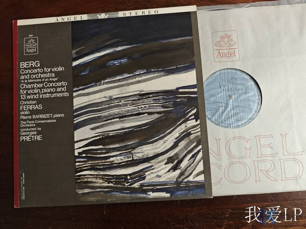 11247,罕见名盘,贝尔格的天鹅之歌《小提琴协奏曲》(纪念一位天使-为马勒的遗孀阿尔玛的女儿玛侬而作)、《为小提琴、钢琴与13管乐器的室乐协奏曲》,费拉斯小提琴、巴比耶钢琴,佩特指挥巴黎学院管弦乐团。Angel美国蓝黑字头版,NM,360