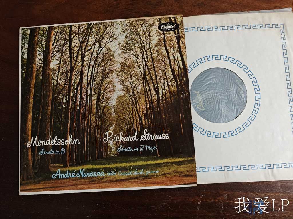 11248,罕见名盘,门德尔松《D大调第2号大提琴奏鸣曲》,斯特劳斯《F大调大提琴奏鸣曲》,法国大提琴四骑士之一的纳瓦拉,卢什钢琴。非常精彩的50年代后期单声道录音!Capitol美国墨绿色标签头版,NM-(如新!仅强光下勉强可见极其虚弱擦痕),450