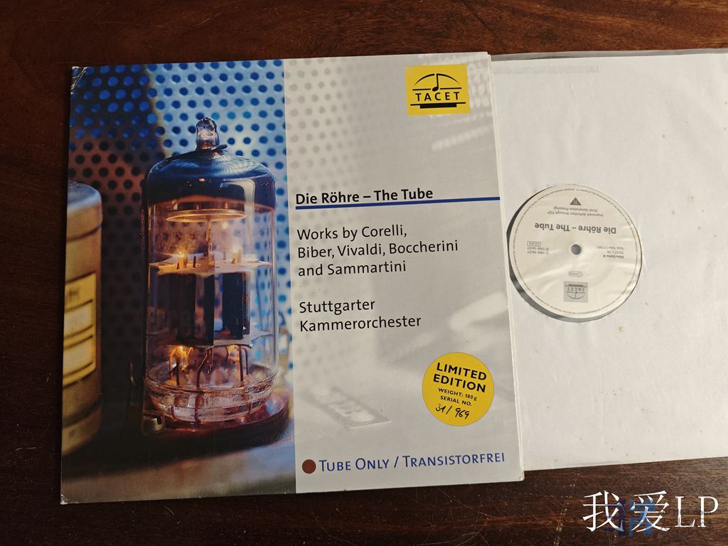 11340,发烧名盘《Die Rohre-The Tube》,包括科莱里《第6号大协奏曲》等6首弦乐小品,斯图加特室乐团。录音全程均采用昂贵的顶级真空管器材,音色细腻高贵平衡,声音醇美厚实,空气感极绝佳!丝滑无比的音质感受!Tacet德国1999年头版,180克压片限量发行,早期的限量编号。NM,550