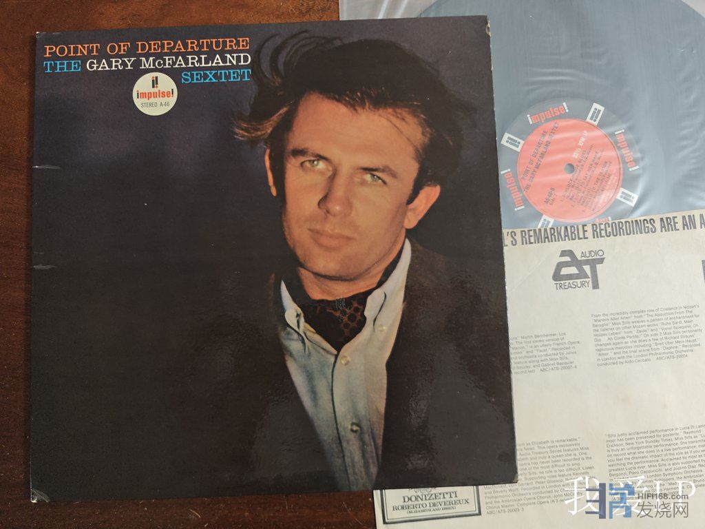 11349,发烧爵士名盘《Point Of Departure》,爵士作曲、编曲大师加里.麦克法兰领衔的六重奏,也是麦克法兰职业生涯最重要的专辑!他的旋律天赋和富有想象力的爵士编曲让这张专辑成为 60 年代爵士乐的重要作品之一!有爵士界威尔金森之称的Van Gelder操刀录音!Impulse美国1967年第二版,有RVG刻码,NM-(如新!仅强光下勉强可见虚弱擦痕),280