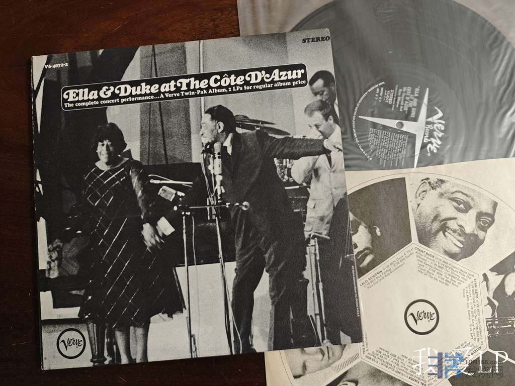 11356,爵士名盘《Ella & Duke at the Côte D'Azur》(又名“蓝色海岸现场”),爵士天后艾拉.费兹杰拉德再次与她崇拜的艾灵顿公爵合作在1966年法国昂蒂布爵士音乐节的现场录音,当艾拉以调皮轻松的语调唱着那首著名的《So Dance Samb (Jazz Samba)》,把爵士乐的即兴感觉像玩耍一样自然地表现出来,你会发现原来人声的技巧居然可以这样!一张轻松愉悦的专辑!Verve美国头版,2LP,NM/NM-(如新!仅极个别强光下勉强可见极其虚弱擦痕),450
