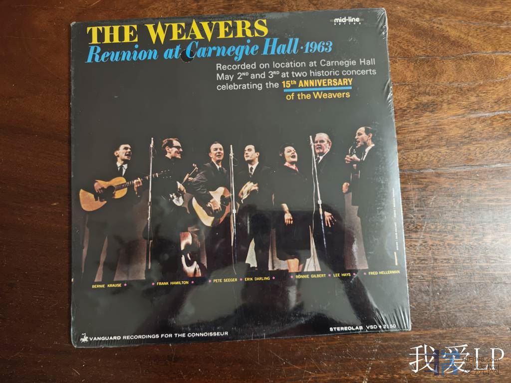 11357,TAS榜名盘,传奇的美国民歌四人组合The Weavers(编织者合唱团)最著名的专辑《回到卡内基.1963》,Vanguard美国1987年再版,全新未开封,外观非常平整应无变形之虞,380
