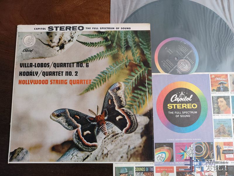 6329,罕见名盘,洛博斯《第6号弦乐四重奏》,柯达伊《第2号弦乐四重奏》,老牌的好莱坞弦乐四重奏团仅有的立体声录音。Capitol美国头版,NM-(如新!仅强光下勉强可见虚弱擦痕),260