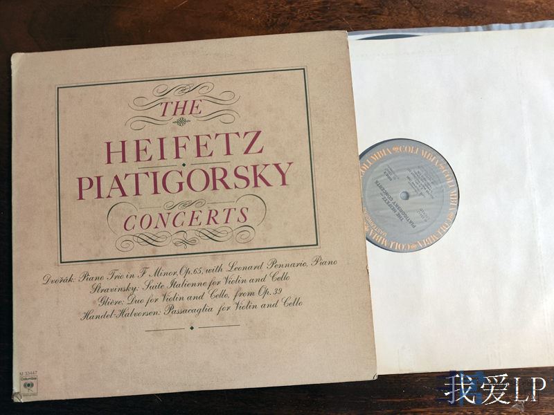 6339,经典名盘《海菲茨、皮雅季戈尔斯基音乐会》,两位大师合作的室内乐录音,包括德沃夏克《F小调钢琴三重奏》(彭纳里奥钢琴),斯特拉文斯基《意大利组曲》,格里埃尔《为小提琴与大提琴二重奏》。Columbia美国头版,NM,220