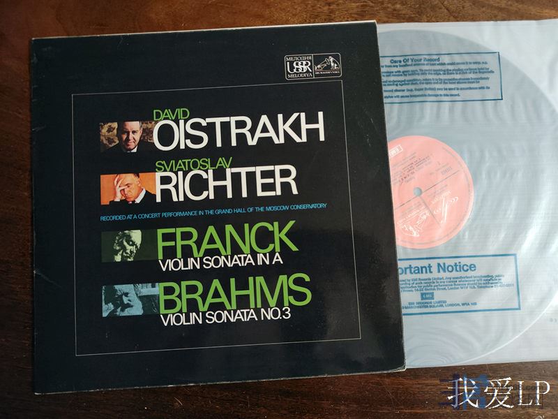 6393,弗兰克、勃拉姆斯《小提琴奏鸣曲》,大卫小提琴、李赫特钢琴,1968年在莫斯科的现场录音。EMI英国头版,NM/NM-(如新!仅B面强光下勉强可见虚弱擦痕),240