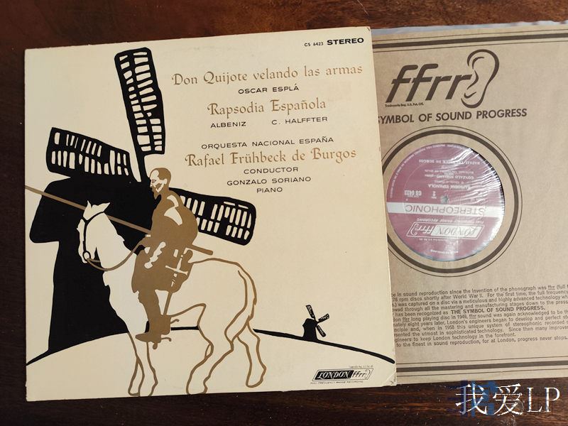 6401,罕见名盘(英国Decca没有发行),奥斯卡.埃斯普拉《Don Quijote velando las armas》(唐吉坷德举起武器)、阿尔贝尼斯《西班牙狂想曲》,岗萨洛钢琴,德布戈斯指挥西班牙国家乐团。London英国早期带沟窄标头版,NM-/NM(如新!仅A面强光下勉强可见虚弱擦痕),260