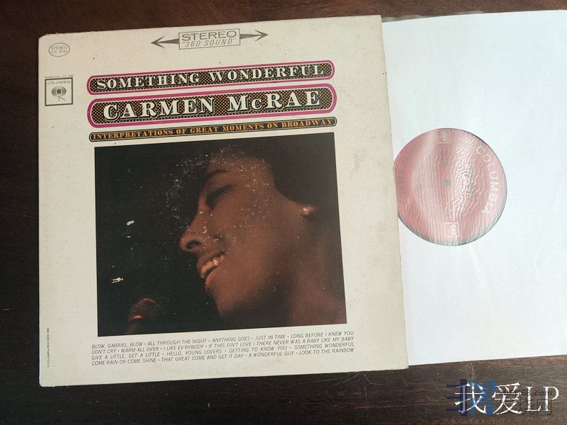 8142,爵士名盘《Something Wonderful》,美国爵士天后卡门.麦克雷(Carmen McRae)演唱百老汇经典歌曲的专辑。Columbia美国两眼头版,NM-(如新!仅强光下勉强可见虚弱擦痕),250
