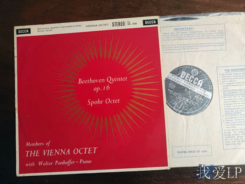 8292,罕见名盘,贝多芬《降E调钢琴五重奏》,施波尔《E大调八重奏》,帕潘夫钢琴、维也纳八重奏团。Decca英国宽标ED1头版,NM-/NM(如新!仅A面强光下勉强可见极其虚弱擦痕),650