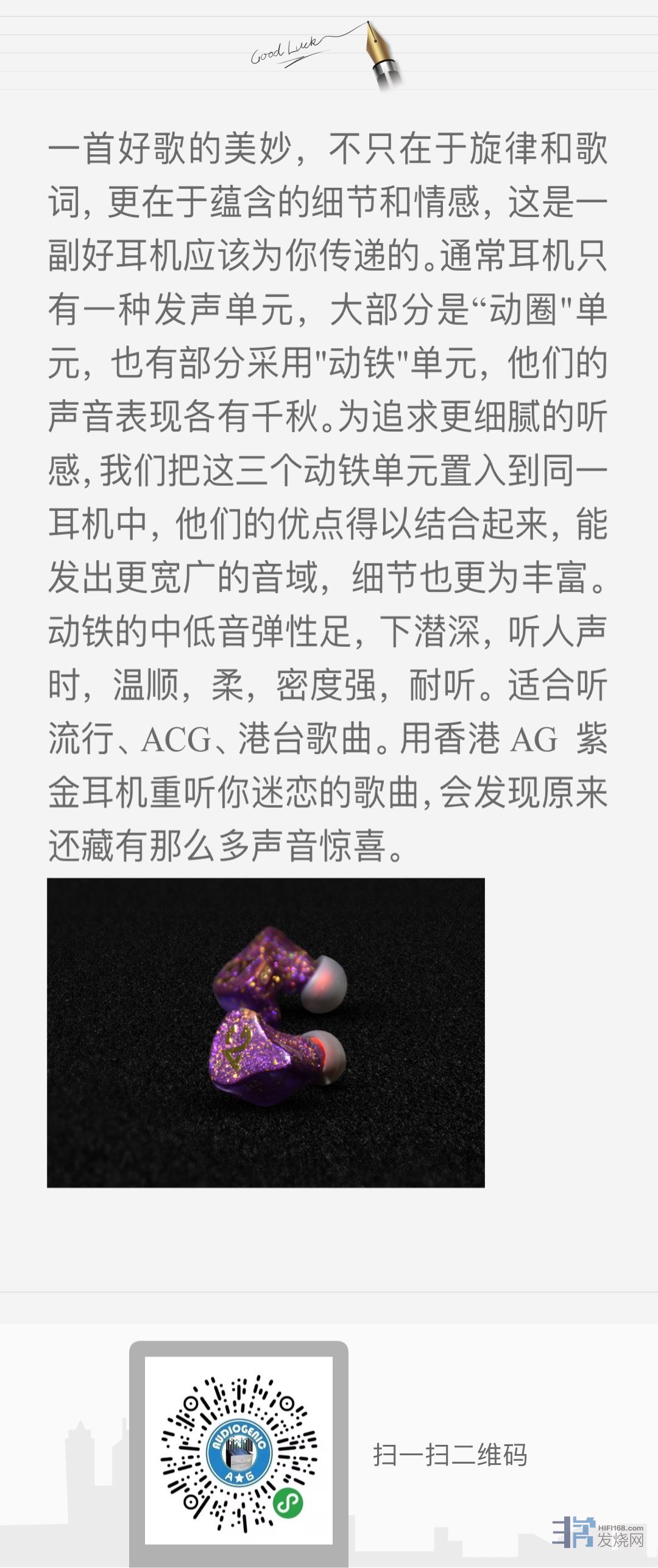配上香港AG 紫金 三单元动铁耳机 听上那动人音乐旋律。