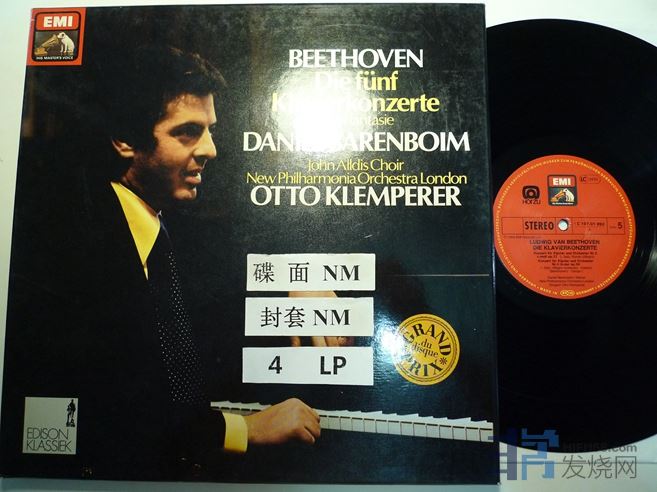 巴伦博伊姆演奏贝多芬钢琴协奏曲,EMI德国压片,盒装4张,150块