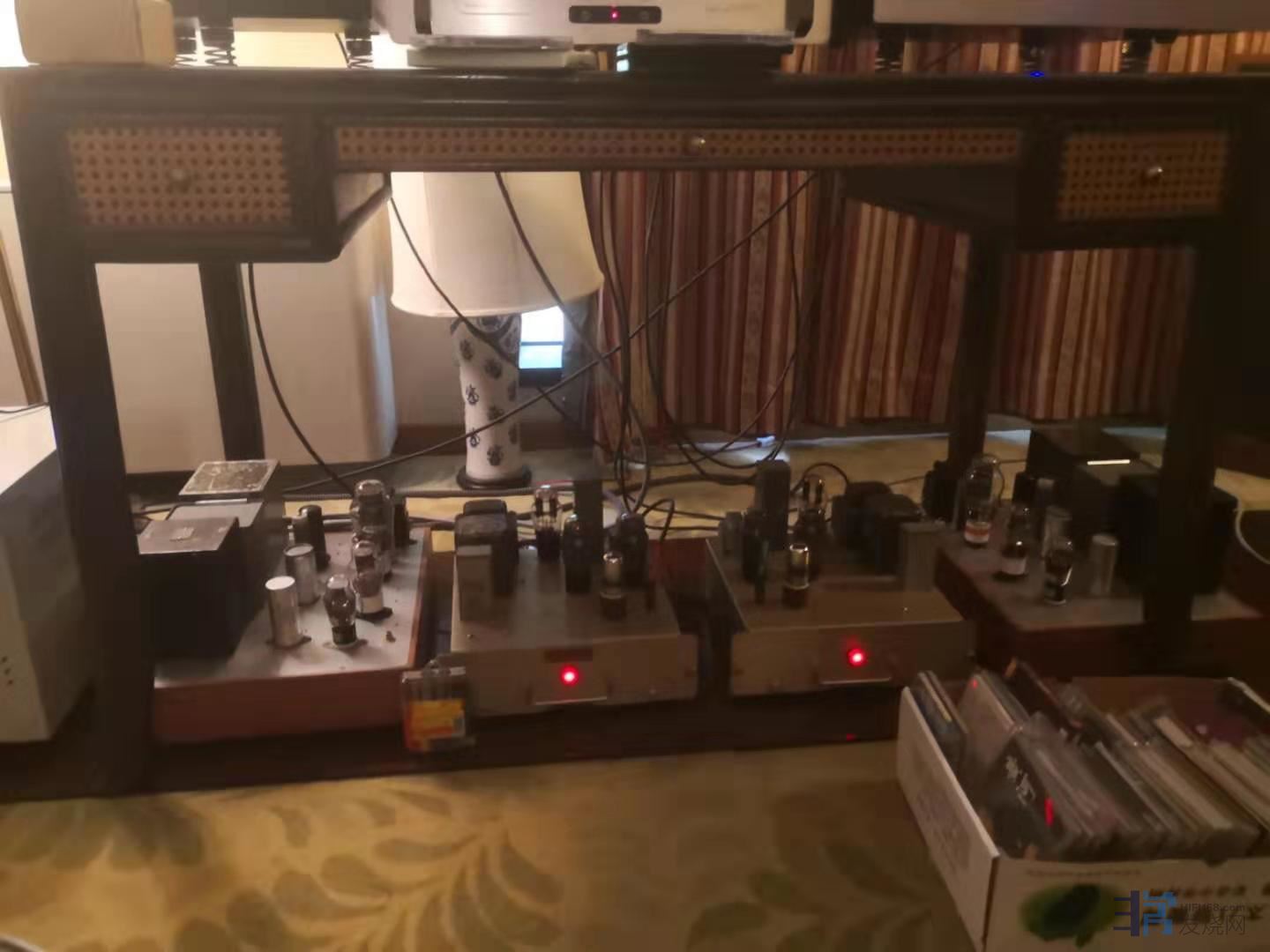 首次参加音展的内蒙古苏迪胆艺的主事人苏建忠老师是在西北发烧圈里鼎鼎大名的古董胆机复刻专家。对古董胆机的研究已有几十年的历史,目前在做胆机高端定制业务。苏老师与其他古董胆机复刻者最大的区别在于其并不迷信于材料上的简单复制,而是通过电路参数上的调整和电子元器件的灵活运用从而让机器在具备当年古董胆机之神韵外,在驱动力和控制力上更加适应大多数不同阻抗与灵敏度音箱的搭配。此次苏建忠老师带来的是一套经典的古董音响器材:音源为studer A730监听cd唱机,功放为自制分体6v6推挽,自制分体300B单端来搭配早期英国声的代表作品查特韦尔PM200(这对音箱的年龄估计在不少发烧友的年龄之上)。关于studer唱机和pm200我在不同搭配下曾听过多次,总体印象是典型的早期英国声风格,饱满有粘滞感,两端延伸保守,低频不太好控制且层次感欠佳。但此次听到苏老师的胆机作品驱动,让我对这对老古董的固有声音印象大为改观。在6V6推挽的驱动下,pm200低频颇有规模且力度感不错,整体声音饱满绵密。表现交响乐作品是显得非常从容不迫。这套搭配在保持着高级胆机的通透与泛音同时,大大提升了pm200的声音纹理刻画能力。用在场另一位烧友的说——粘而不滞,我则要再加一句概括:厚而不雍。能将老古董的声音基底深度开凿到此等程度,足见设计者的功力和积累。老树虽还是老树,有料照样出新芽!