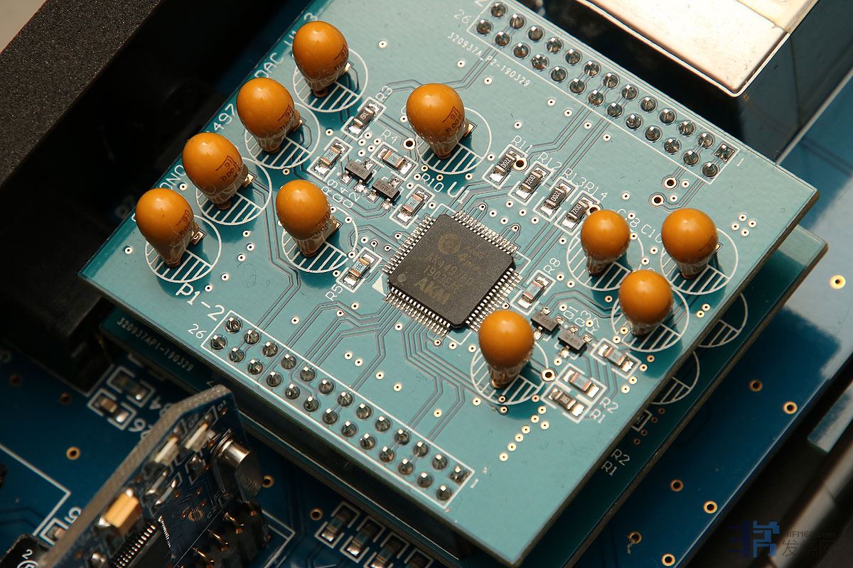 解码部分上有两个可插拔的解码芯片模组,目前是双AK4497,以后可以升级更高级的解码芯片,只需一插一拔就完成升级更换。