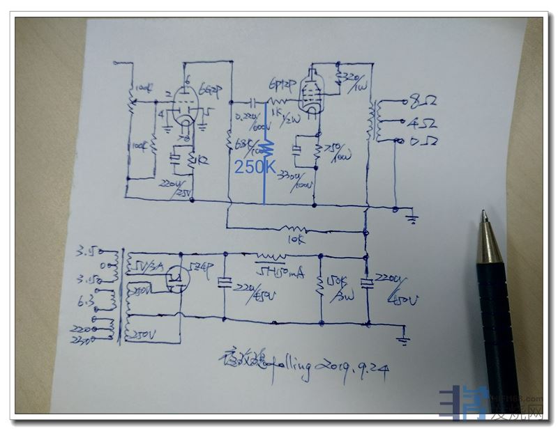 回看画漏一个耦合旁路250K电阻,刚才坐车时手机绘图补上的。