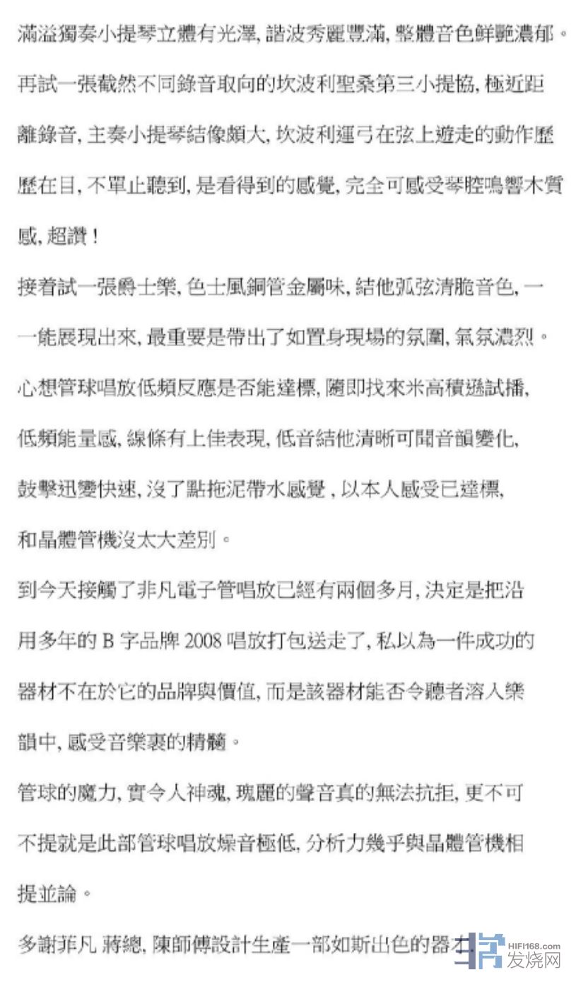 试听人声弦乐交响爵士唱片,初听感觉声音厚润,胆味浓郁,高频细节丰富,低频弹性不错!