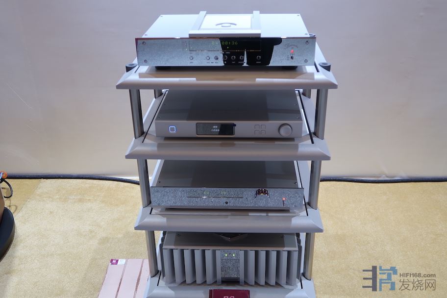 这次所用的冠廷(Lansche audio)落地音箱,我在这两年的展会上听过好几次,虽然我承认它有很高的硬素质,但说实话我并不怎么喜欢它的声音风格。离子高音虽然高频上限去的很尽,但缺乏致密感和实体性,在我看来声音有些假。而Lansche 的中低频又是量感充足甚至有点肥厚,致使与中频的密度也受到了影响。所以当得知今年仙瑟展房用这个音箱系统展示时我本并不看好它。但实际听下来再次颠覆了我的音响观,经过ART线材附件产品和黄信先生的针对性调教之后,冠廷的离子高音居然首次让我听到了韧性和密度。低频在保持宏达规模感同时瞬态表现大幅度提升。虽然中频方面,冠廷式中音风格还能听的出来,但是已经完全进入了我可接受的声音审美范畴之内了。