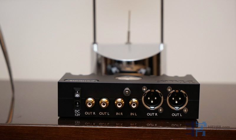 自己用耳朵听听看哪档最适合府上音响系统。说明书上有以不同的颜色标示,您自己对照着看就明白。而在背板上,Huei有RCA输入与输出各一组,另外还有一组XLR输出端,这么便宜的唱放竟然还设有平衡输出,这也是少见。