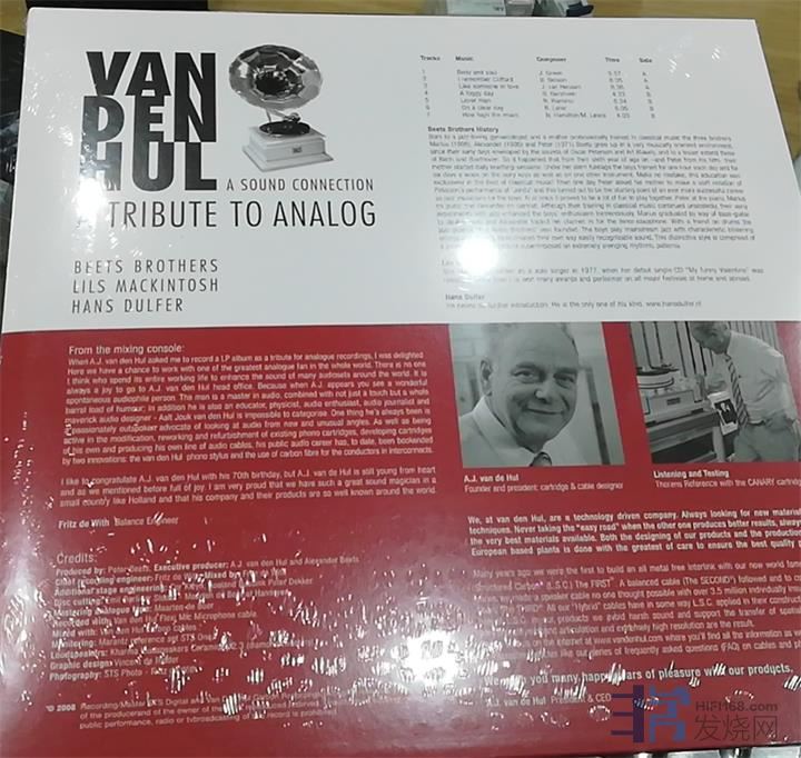 这是一张A.J.van den hul博士向模拟音乐致敬的黑胶专辑,33转,编号VDH 08LP01.