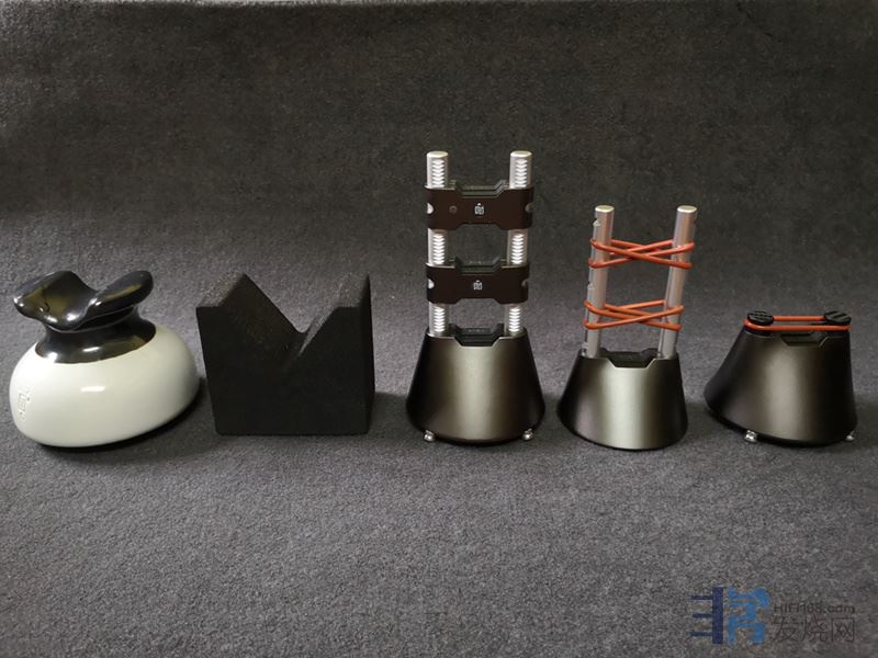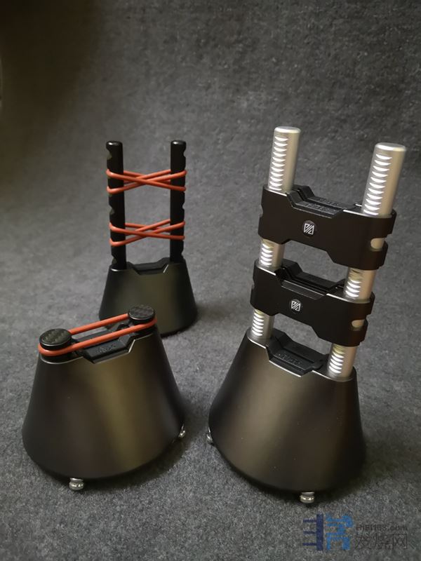 此次送来的一共三款型号,分别是Ref I、Ref II和Base II。这三款架线器的包装相当有文艺范儿,拿在手上质感上乘。铝合金整体切削的底座提供了稳固的基底,曲面设计和配色美感十足。Ref I和Base II都使用了避震硅胶环作为接触材质,而Ref II则采用了铝合金加防震硅胶,并带有锁紧功能。Ref I和II底部都配备了避震脚钉近一步减少来自地面的干扰,Base II底部则采取了硅胶垫片进行减震防滑处理。从设计上来说可谓用心十足。