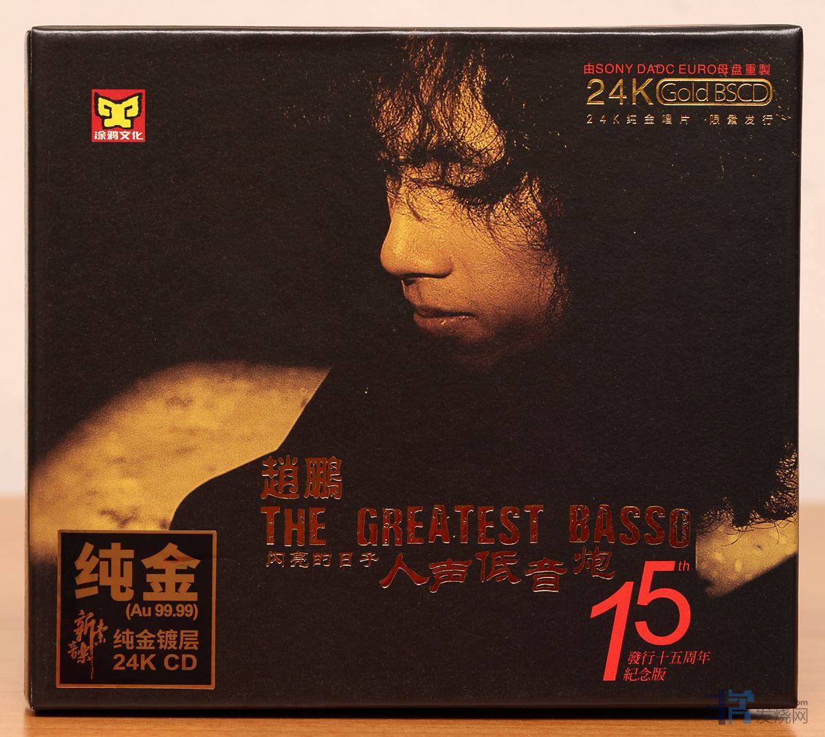 之前《赵鹏 人声低音炮 闪亮的日子 》已经出版过普通CD、AQCD、HQCD II、玻璃CD、黑胶等等版本,最近15周年24K纯金版本上市了。