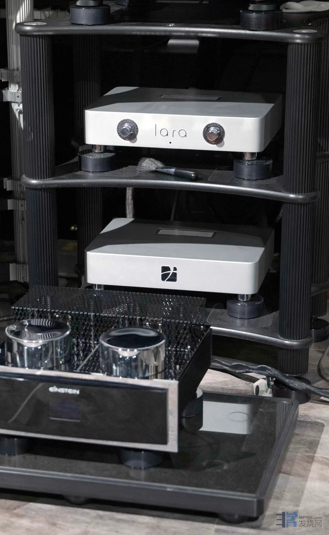 爱因斯坦的前级一直是最热销的产品之一,不但与爱因斯坦的后级成套搭配,其他不同后级的拥有者也常常对其情有独钟,所以常常造成爱因斯坦前级脱销。无锡的这位朋友在圈定丹拿音箱之后,重点当然是对爱因斯坦前后级的考察,遗憾的是因为没有前级搭配只能选用塞尔维亚之声的LARA前级来一个“拉郎配”,为了考察其推力和控制力,首先出动四个大汉搬出信心60作为参考。