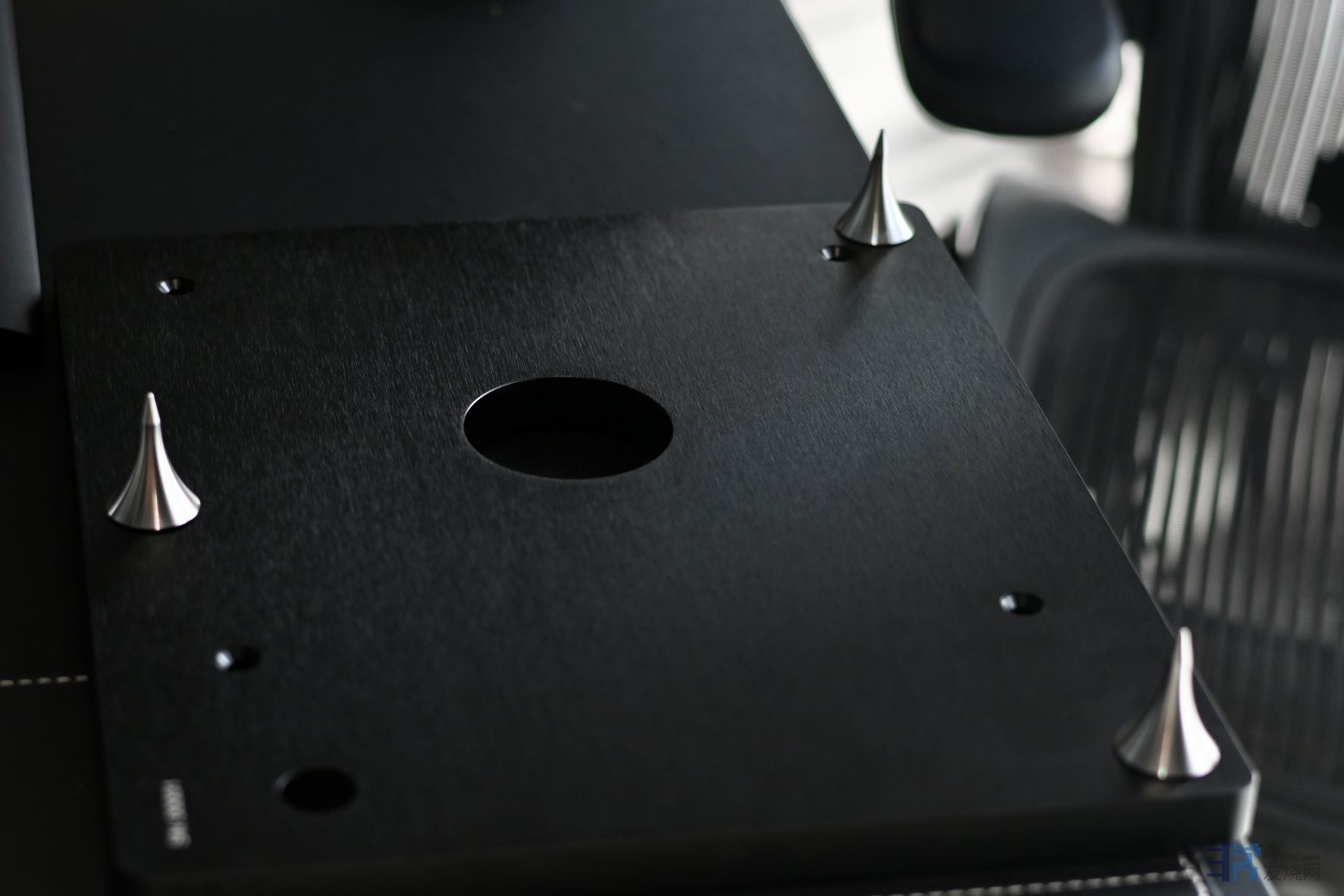 所以底盘的加工精度,脚钉的结构以及脚座对机架和脚钉的耦合,实际上是这个唱盘系统能够声音稳定和细节丰富的重要基础。