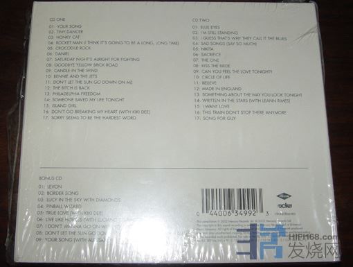 301.Elton John精选43首,包括《狮子王》主题曲 “Circle Of Life” 以及“Can You Feel The Love Tonight ”,限量欧版,封底下方中间有处很小压痕,其余基本OK 3CD 80元