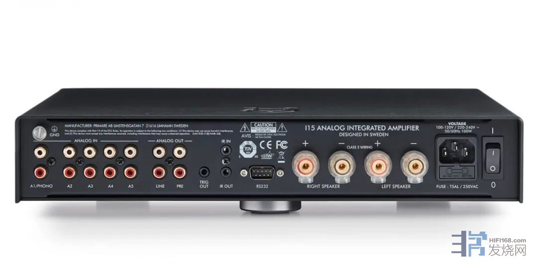 Primare 的 15 系列是所有产品中体积最小的系列,象是这款 I15 MM 综合放大器面宽仅 35 公分,比一般 43 公分标准尺寸小了许多,摆放也更为容易。I15 MM 是一台纯模拟输入的机种,内部搭载著名的 Hypex UcD D 类放大模块,能在精鍊的尺寸下提供足额的 60 瓦输出功率,对于多数音箱都能妥善匹配。