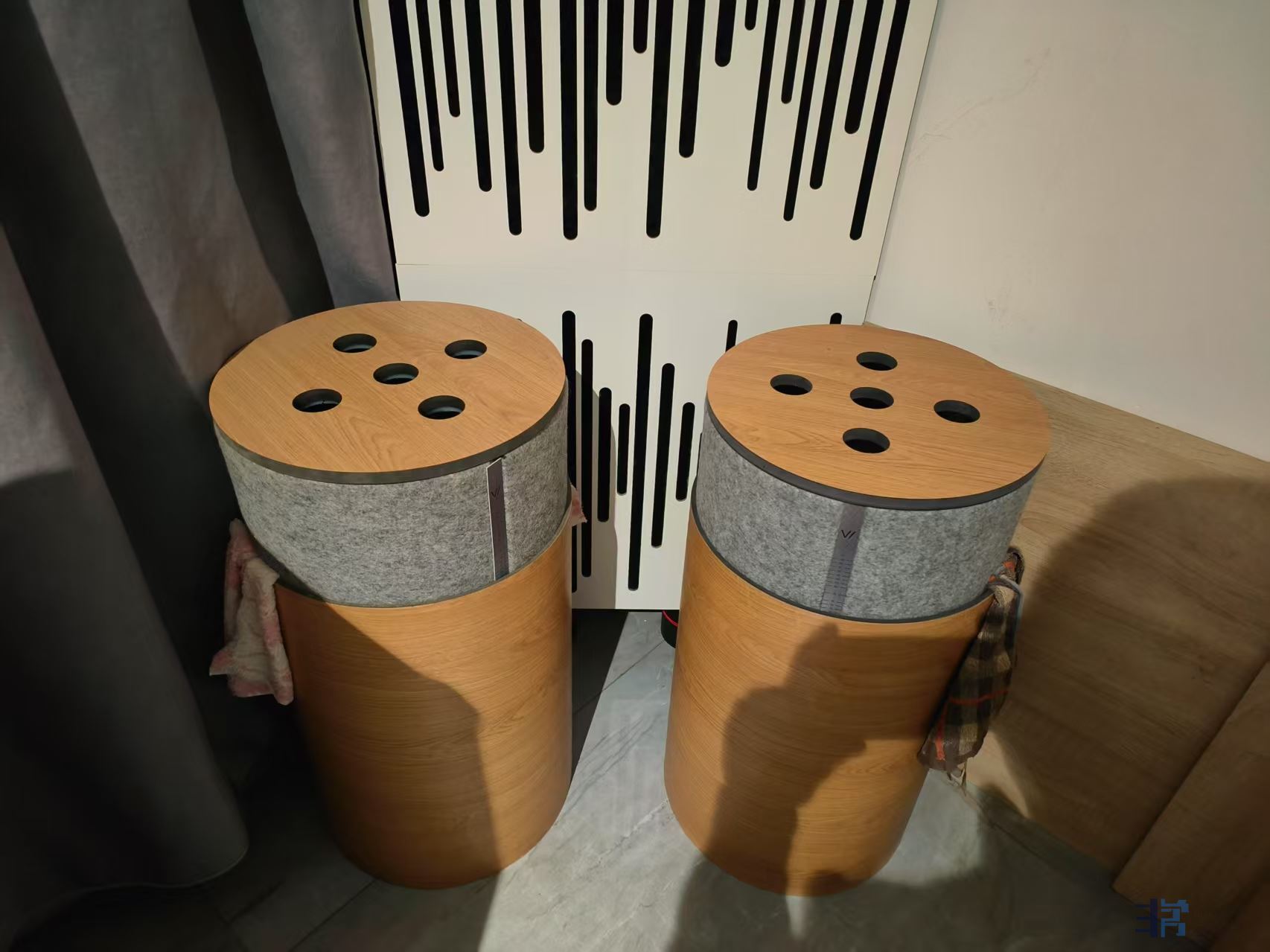 继续搞,威巨声低频陷阱侍候。经过反复比对,目前两对低频陷阱吸收低频的频率,分别是61赫兹、67赫兹。