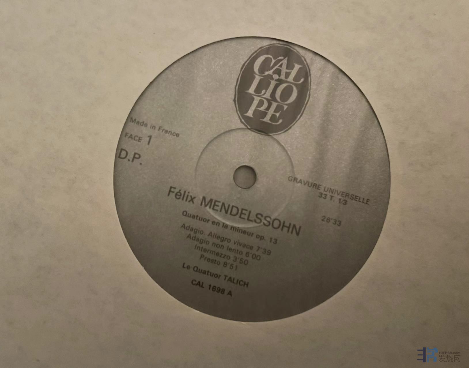 塔里赫四重奏(Talich quartet)演奏博凯里尼、门德尔松等弦乐四重奏作品,法Calliope首版,唱片正常袋印无划痕,播放轻微底噪,成色NM-。380元(已出)