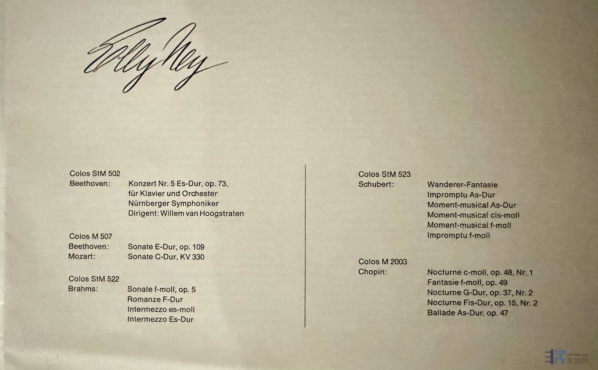 德国版Colosseum出品,伊利·内伊 (Elly Ney)85周年纪念套盒,包含贝多芬、舒伯特、勃拉姆斯等作品,4张12英寸盘,1张10英寸盘,内容如图,除一面有一条明显软痕如图(但完全不影响播放),其余均无划痕,播放良好,成色1EX/7NM-。(此套拍下多送一张Elly Ney诠释的舒曼,只有盘无外封,曲目为最后一张图。) 1750元