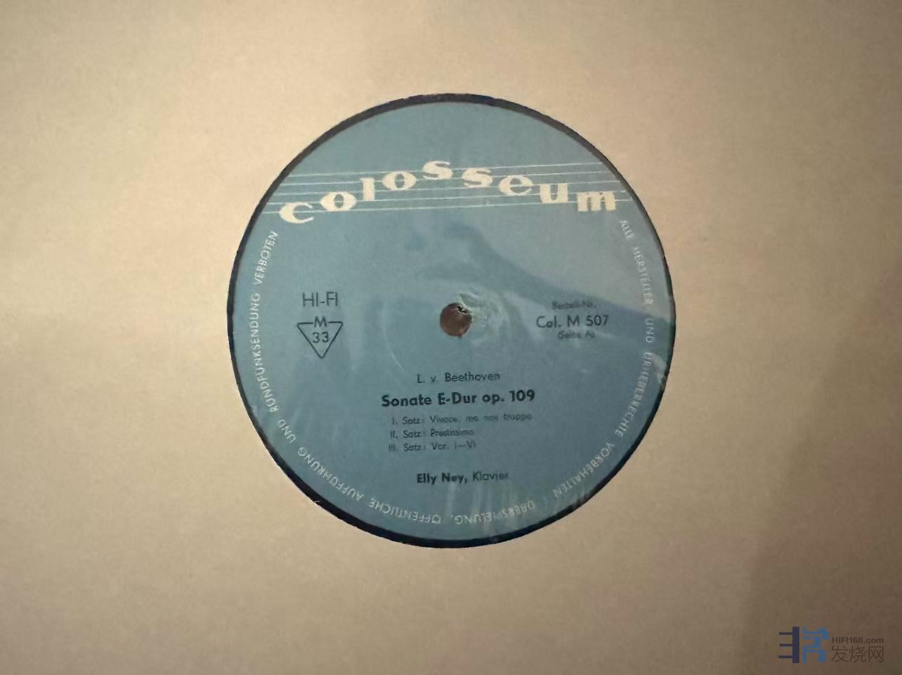 德国版Colosseum首版,伊利·内伊 (Elly Ney)Spielt Beethoven,7英寸盘, 仅拆封,未上机,因原始包装内并无内袋,导致盘面有一些些磨痕,成色EX。150元