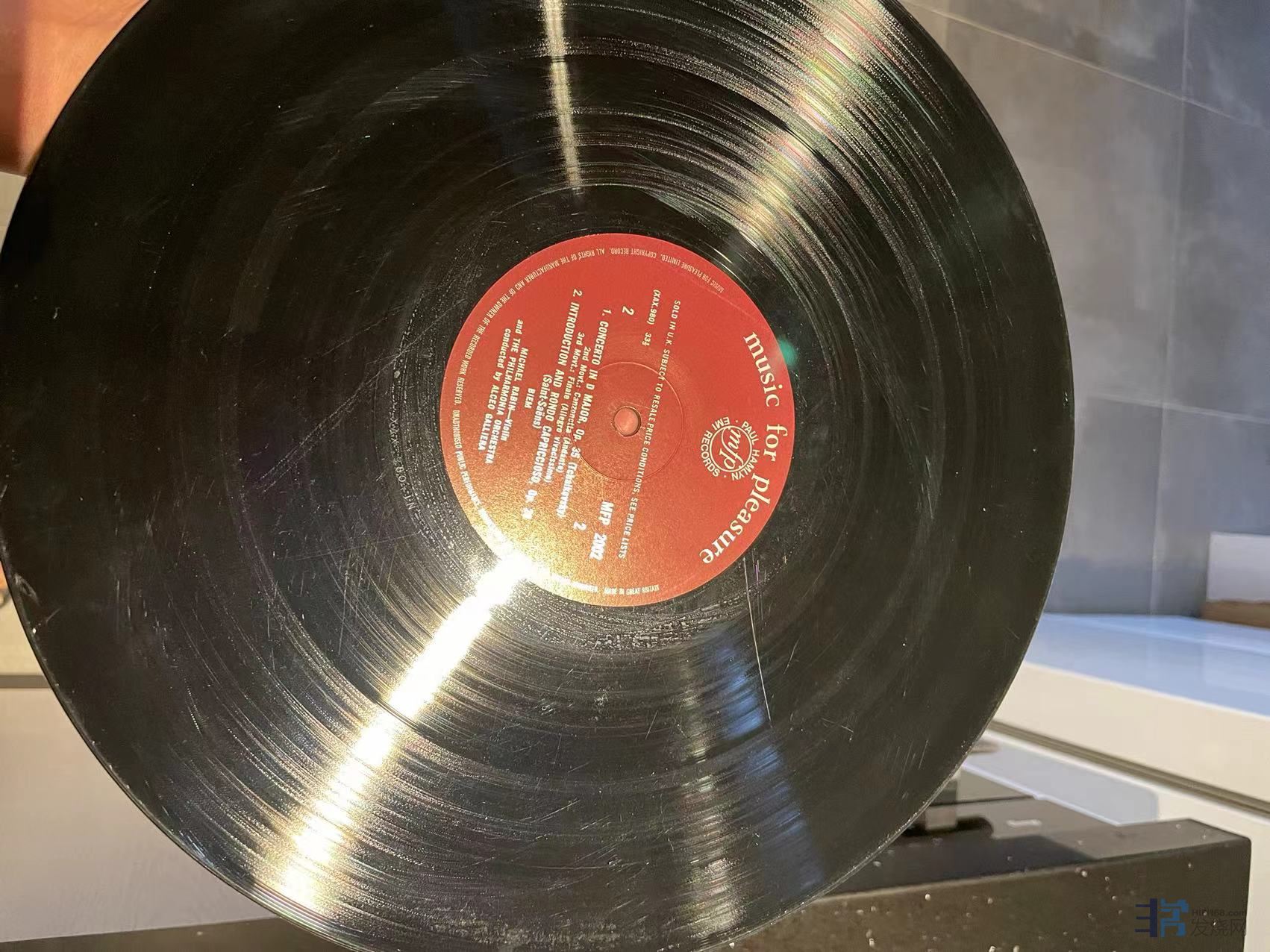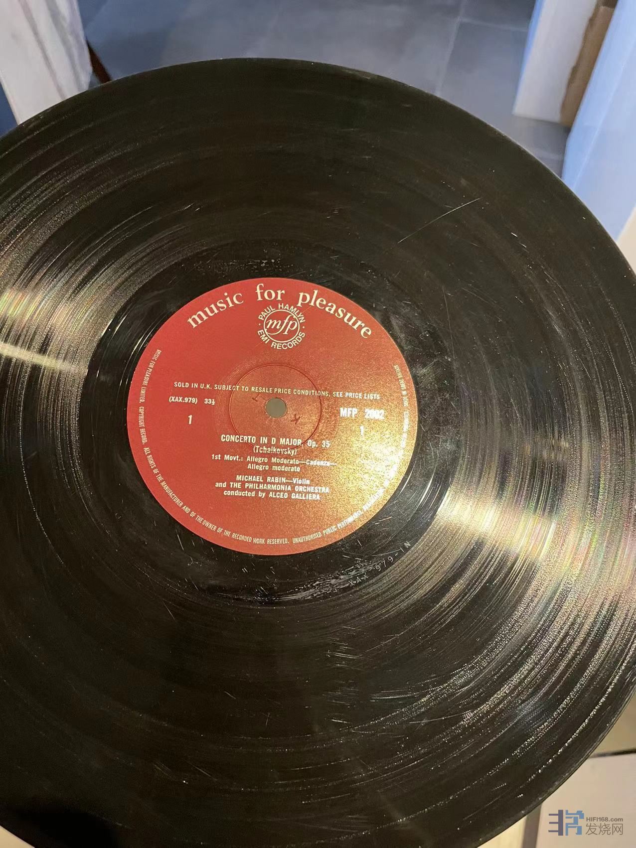 柴可夫斯基小提琴协奏曲,拉宾(Rabin)演绎,EMI的MFP系列,英版,由于原装纸袋的原因,唱片表面较多纸袋痕和划痕如图,清理后实播有明显底噪,无跳针,很不错的演绎,成色EX-。特价150元(已出)