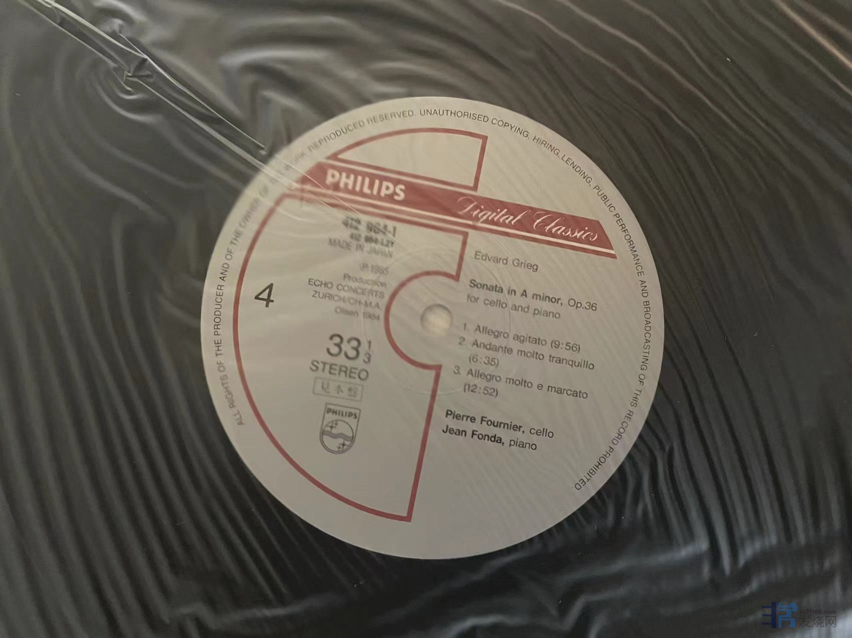 [quote]霍尔舍(Hoelscher)和德慕思(Demus)演绎的勃拉姆斯大提琴奏鸣曲,非常著名的天价唱片,此为日版Spectrum限量制作500张,以ED1的大花版为母盘重置,聆听感觉蛮不错,唱片有轻微纸袋痕迹,播放没有明显影响,成色NM-。450元