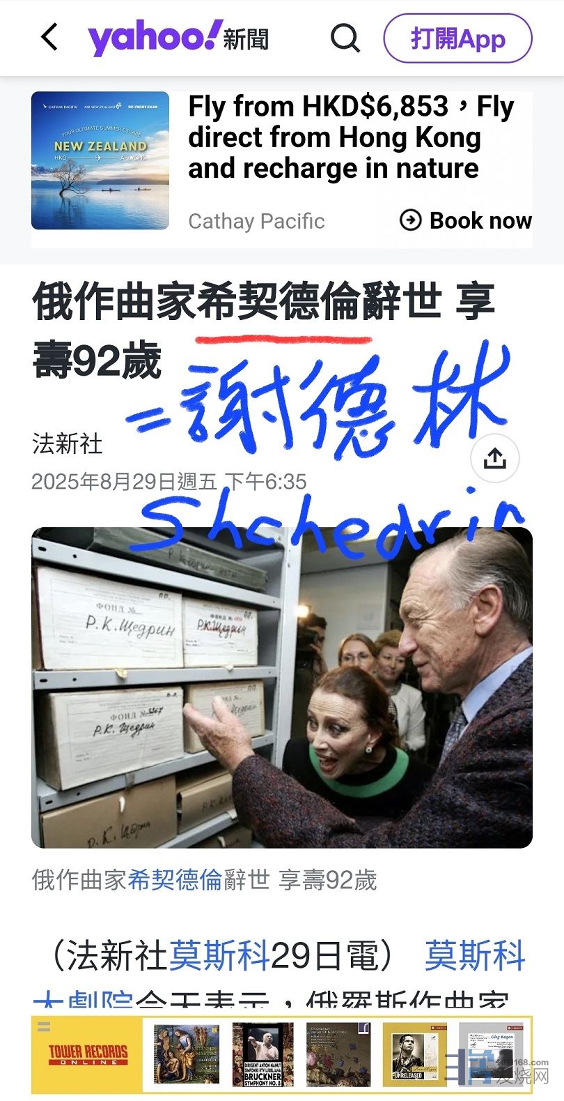 「敲擊卡門」作曲家 謝德林(R. SHCHEDRIN,1932¬2025/8/29)逝世,享年92