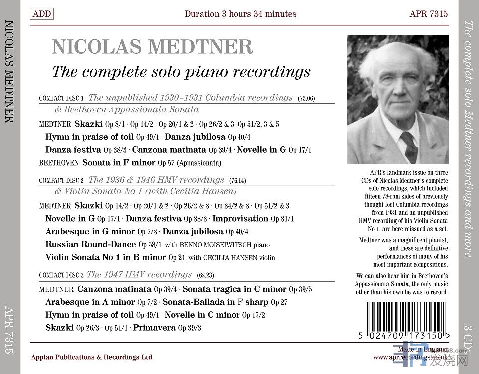 APR7315(3=2CD PRICE) Medtner鋼琴藝術