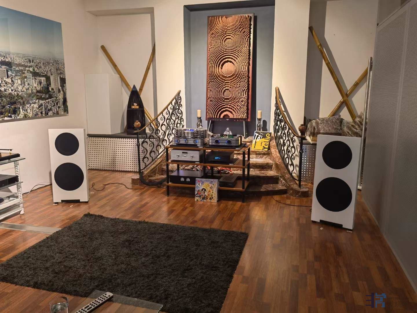 位于德国慕尼黑国际音响展音乐空间障板音箱,搭配的是西电之声胆机 店铺
