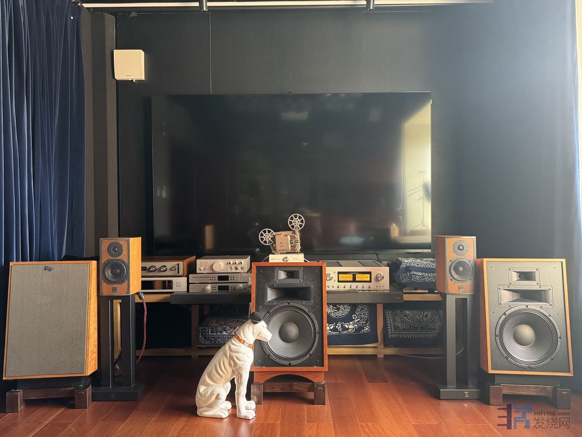 。。。因为本人是HIFI和AV双修玩家,视听室落成前,为了兼顾HIFI和AV双修和节省空间,一直在寻找适合这个小空间的三分频落地箱,最终,Klipsch杰士Heresy凯旋三代落入我的法眼,价格也是适中,直到视听室落成时,一共搞了三只同型号的三代箱子作为AV系统的前三喇叭,顺便说下,杰士的号角喇叭(包括JBL 44系列),在电影玩家的口碑中,一向都是非常值得推崇的玩法。同时,凯旋三代左右两个主箱子同时兼任HIFI主箱,不管是听音乐还是看电影,三代箱子的声音表现,都非常满意,与空间也很搭配,真的是小空间的经典好箱
