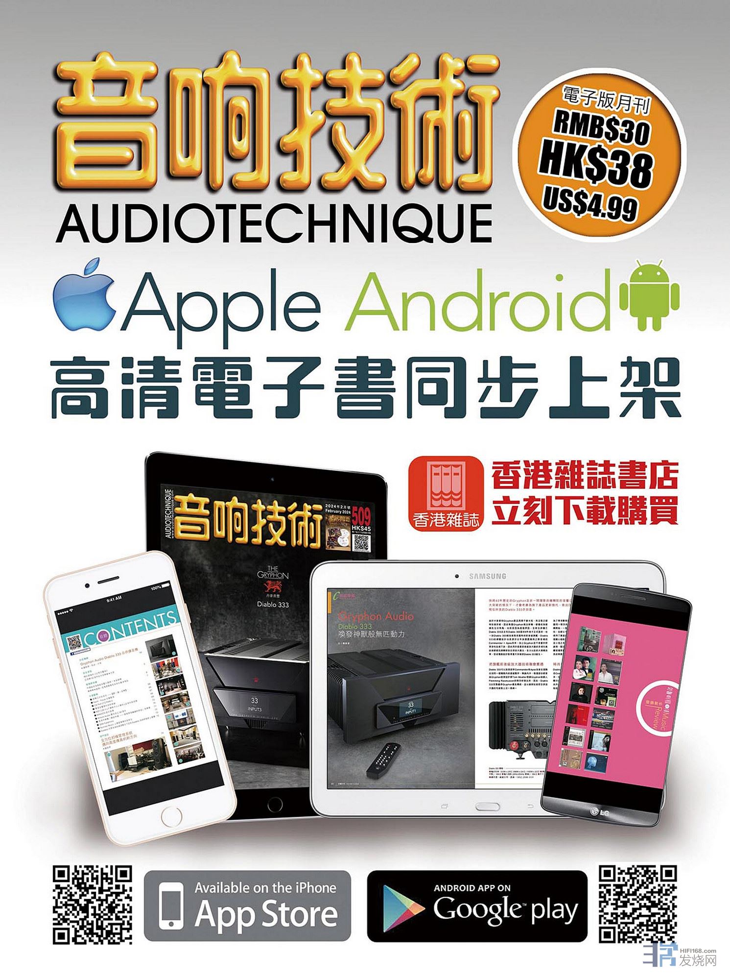 【音响技术】书刊在全港书报摊、音响店、CD店铺有售,而外地的读者除可透过订阅之外,亦可考虑购买电子版,【音响技术】已于Apple Store及 Google play两大电子平台登陆,欢迎选购是月新书或补购过往期数。