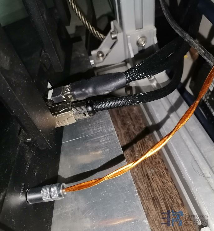 改造后 使用意大利 ART30A 电源线 插入线性电源 输出瑞士DC线 取代路由器适配器