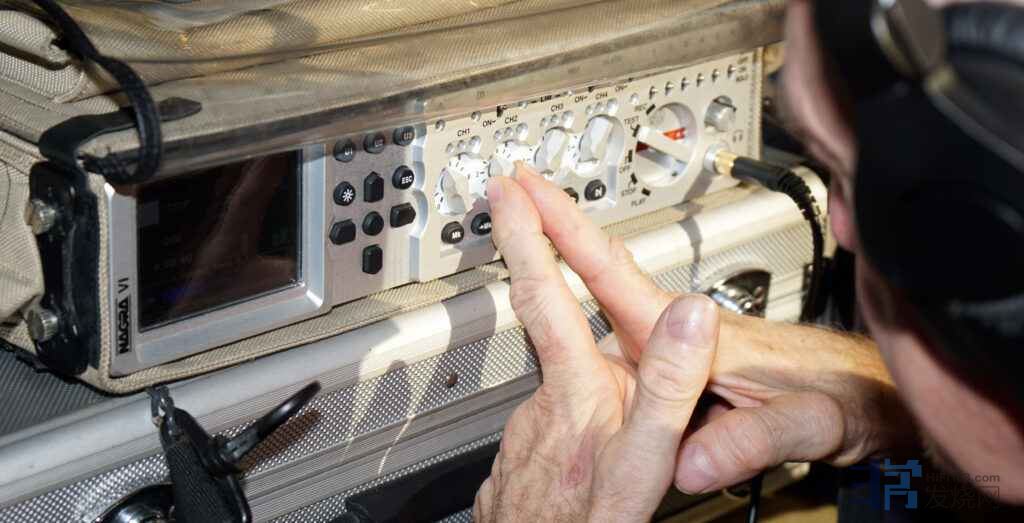 这张照片展示的是本次录音的设备配置。现场虽还架设了其他麦克风,但均是为观众席扩声系统配备的。负责录音的麦克风为一组高位架设的TLM 50间隔式麦克风,安装于扩声音箱后方。人声麦克风的信号接入Nagra VI进行混音,再以两路模拟信号传输至Nagra IVs进行录制。两台设备均由电池供电。