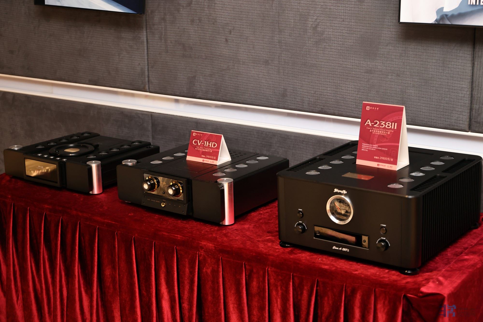 高班音响带来旗下各款胆机,主力演示新款合并机LS-35,搭配Stirling(斯特林)LS3/5A。