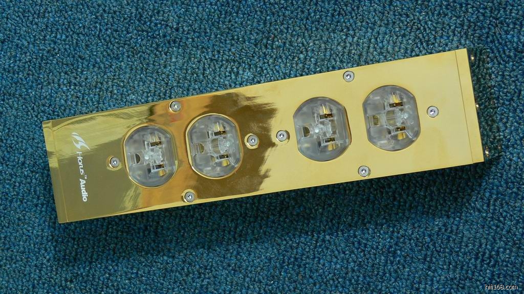 插板是用3公斤的黄铜6块板做的,分量很足,手感一流,外形大概没有人不喜欢的吧~呵呵~使用镀金电源输入插座, 进口的镀金磨沙透明插座,英国专业电源线,承载电流15A 电压220V ,分离接线,附加无源超高频滤波(不会有象有源滤波一样的副作用)。