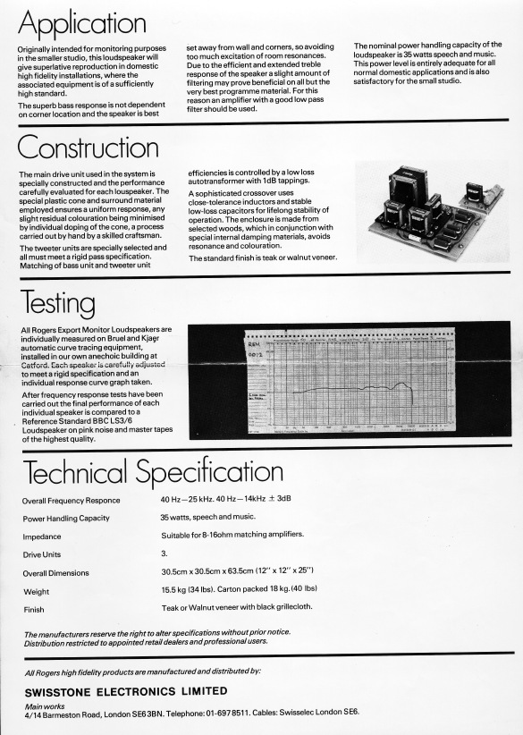 ROGERS EXPORT MONITOR真正的ROGERS监听音箱,3单元15欧40HZ-25KHZ,STUDE ONE是后期的民用版,分频器设计完全不同,有点类似15欧的3/5A,当然声音和STUDE ONE也完全不同,高低频延伸更好更细腻,难得一见的精品! 八五新,无摸修.