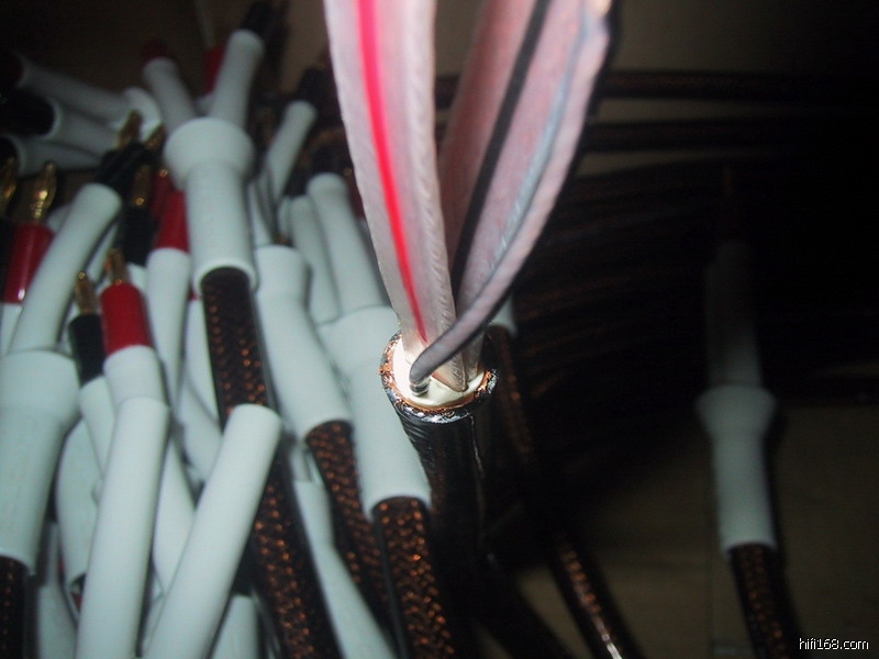 厂家介绍说是6N无氧铜,线材结构为三明治式解构,高低频传输可分开传输,非常低的阻抗,与喇叭阻抗匹配更好。线长1.5米每对,标准原装香蕉插头。