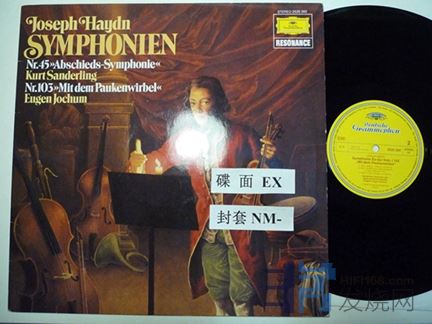 桑德林指挥海顿第45号交响曲“告别”,约胡姆指挥海顿第103号交响曲“告别”,103号交响曲这面有条划痕,这一面三分之二的时间内经过这里有“哒”声,还有几条浅擦痕,DG德国压片,15块