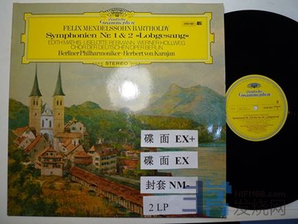 卡拉扬指挥门德尔松第一、第二交响曲,对开双张,DG德国压片,60块